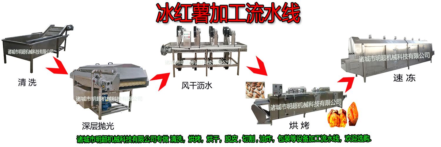 烤冰紅薯生產(chǎn)線需要的設(shè)備有:紅薯清洗機(jī)→紅薯清洗拋光機(jī)→風(fēng)干瀝水→紅薯烘烤設(shè)備→紅薯速凍機(jī)【也可根據(jù)不同客戶需求增加或者減少設(shè)備,為客戶量身定制設(shè)備】