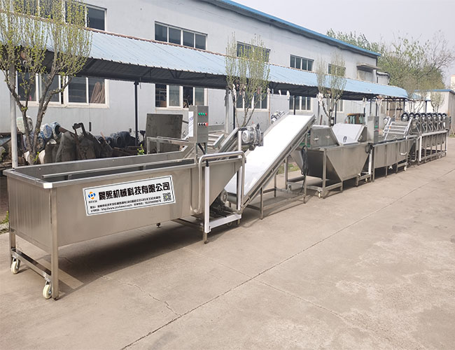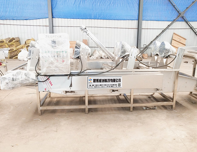 預制菜漂燙冷卻流水線是一個組合,用于殺青蔬菜,瓜果,蓮藕,土豆絲,山藥等,切割后容易變色的果蔬,用漂燙設備進行一個熱處理,阻斷蔬菜跟空氣的一個結合,從而放置蔬菜切割后變色,變黑的情況出現,漂燙后進入冷卻機用冰水進行預冷冷卻放置蔬菜經過熱處理后過熟, 造成影響果蔬后期加工的一個口感,也可以用經過過濾后的自來水進行自然常溫水冷卻,由于每個產品的加工要求不同,配置的設備大小也是不同的,結構和內部設計都會不同,歡迎來諸城市晨熙機械公司考察項目。