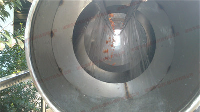 滾筒式清洗機是借圓形滾筒的轉動,使原料在其中不斷的翻轉,同時翻滾的原料與滾筒內壁相互摩擦以及原料之間的相互摩擦,達到清洗的目的,用水管把泥沙由滾筒的網孔經底部排除,該機適合清洗柑橘、橙子、馬鈴薯等質地較硬的物料。動力傳動過程:由電機通過連軸帶動小鏈輪轉動,然后通過鏈條帶動大鏈輪轉動,而大鏈輪與小摩擦輪栽同一根軸上面,大鏈輪的轉動通過連接帶動軸上面的小摩擦輪轉動,然后小摩擦輪帶動大摩擦輪轉動,摩擦輪與滾筒焊接在一起,因此實現滾筒轉動。螺旋導板通過螺旋連接在滾筒內部,當滾筒轉動后,螺旋導板會隨著滾筒一起轉動,里面的螺旋齒在轉動的過程中,會慢慢的把清洗的物料慢慢排除。 帶動大摩擦輪轉動,摩擦輪與滾筒焊接在一起,因此實現滾筒轉動。